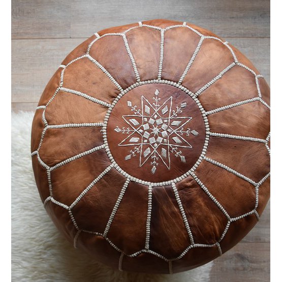 Wil je je huis nog gezelliger maken of een leuke boho sfeer geven? Dan zijn onze handgemaakte poefs perfect voor jou! De leren poef cognac bruin wordt vaak gebruikt als decoratie, maar is ook ideaal als voetenbankje of als extra zitplaats voor kinderen. Multifunctioneel! Onze poefs zijn handgemaakt van hoogwaardig echt leer en met liefde gemaakt door een coöperatie van ambachtslieden in Marokko.
